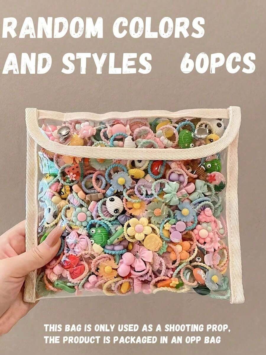 100 Peças/90 Peças/80 Peças/70 Peças/60 Peças/50 Peças/40 Peças/30 Peças/20 Peças/10 Peças/Conjunto Acessórios para Bebê Meninas Toddler, Anéis de Polegar de Princesa Cartoon de Cor Aleatória e Pequeno Elástico de Cabelo, Embalagem em Saco OPP