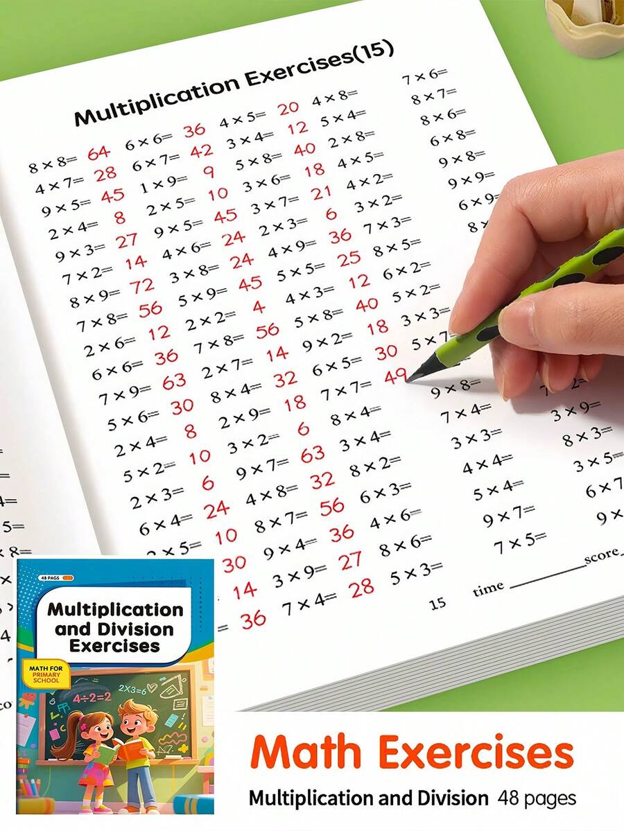 1 Peça Livro de Exercícios de Multiplicação e Divisão para Crianças com 48 Páginas, Adequado para Exercícios de Multiplicação e Divisão no Jardim de Infância e Pré-Escola, Um Livro de Escrita Divertido para a Educação Inicial, Presente Requintado, Livro de Exercícios, Livro de Escrita em Inglês Divertido e Durável, Útil para a Preparação de Volta às Aulas, e Também Adequado como Presente de Festa de Natal