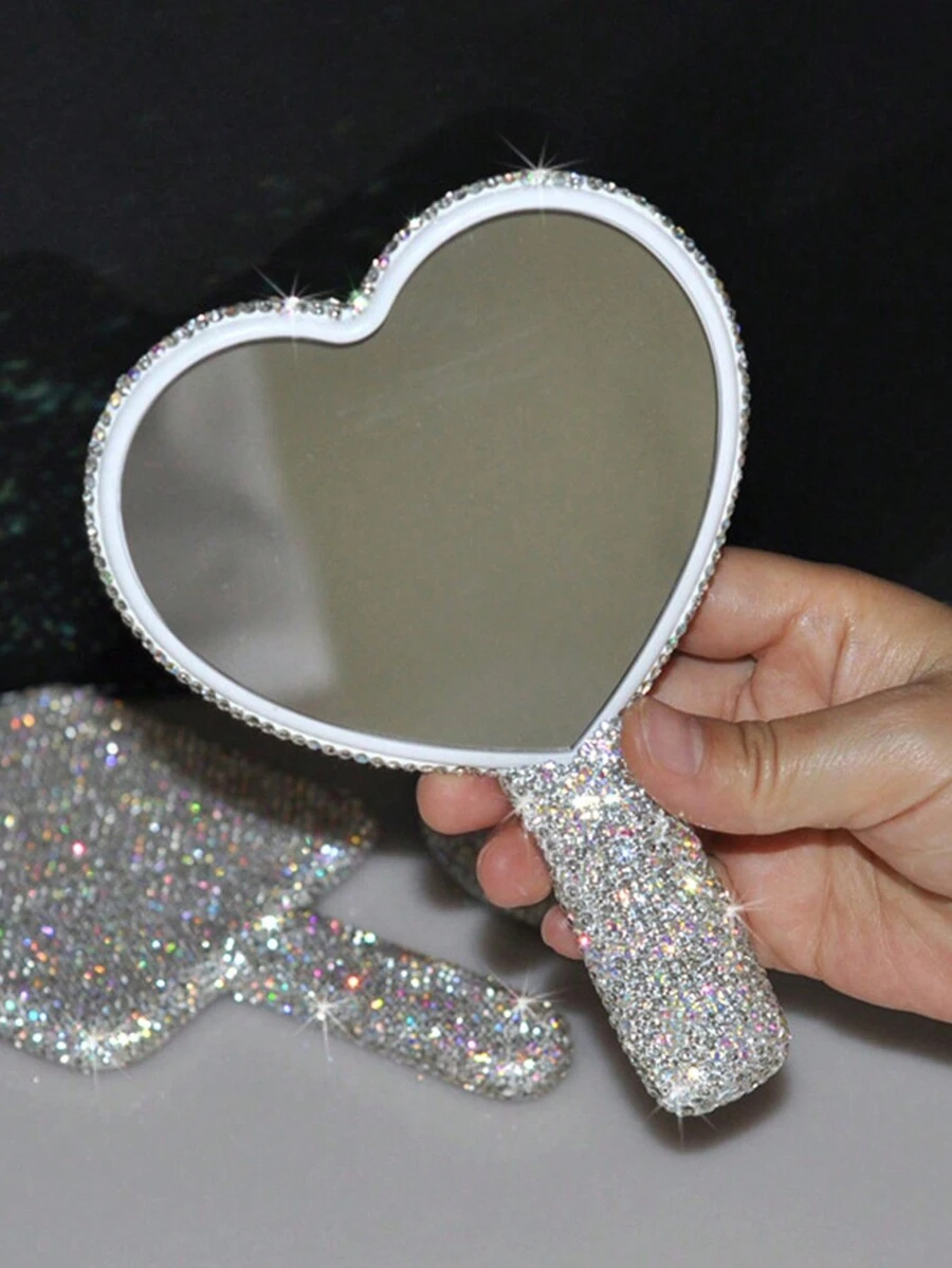 1 Peça Espelho de Maquiagem em Forma de Coração Cravejado de Diamantes, Espelho de Vaidade de Cristal Cintilante de Luxo, Adequado para Viagem, Casa ou Presente, Maquiagem, Barato, Decoração de Quarto, Vaidade, Viagem, Quarto, Acessórios de Maquiagem, Espelho, Espelho de Vaidade, Mini Espelho, Espelho Compacto, Espelho Pequeno, Espelho de Mão, Barato, Enfeites de Meia, Maquiagem, Ferramentas de Maquiagem, Coisas Baratas, Presentes, Presentes para Mulheres, Presentes de Natal