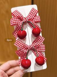 2 Peças Presilhas de Cabelo com Laço de Cereja Fofo, Acessórios de Cabelo da Moda Coreana Adequados para Uso Diário, Acessíveis, Presilhas de Garra, Grampos de Cabelo, Grampos de Cabelo, Barras de Cabelo, Moda de Outono, Outono, Inverno Conjunto para Mulheres, Laços, Acessórios de Cabeça, Grampo de Cabelo #1 Mais Vendido