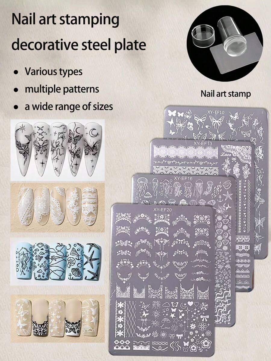 1 Peça Placa de Carimbo de Arte de Unhas, Edição Limitada de Novo Estilo INS, Designs Incluem Ponta Francesa, Borboleta, Laço, Coração, Renda, Floral, Arco-íris, Estrela, Amor, Fogo de Artifício, Margarida, Água-viva, Concha, Estrela do Mar, Alga, Golfinho, Cauda de Peixe, Gancho de Pirata