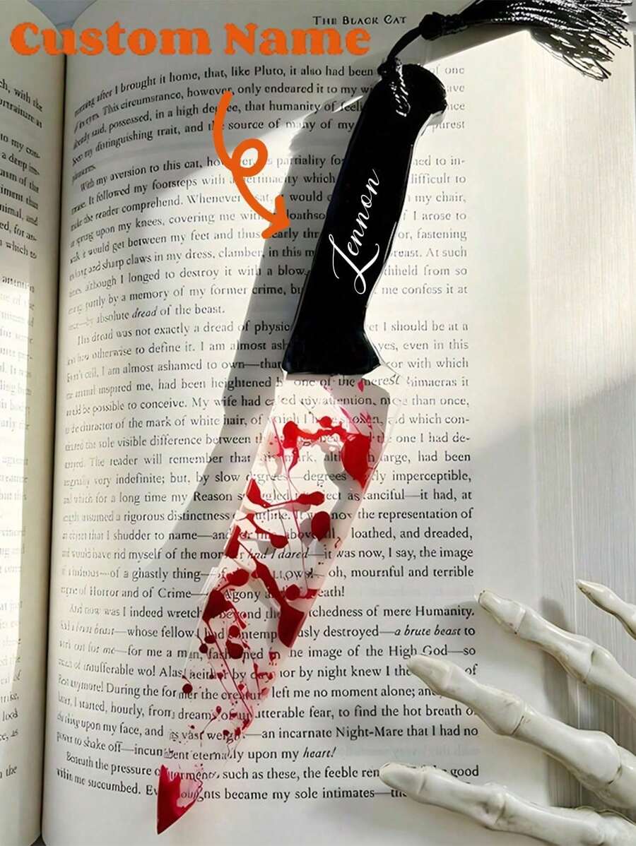 1 Peça Marca-Página Personalizado com Pingente de Borla, 2 Estilos de Machado Gráfico Sangrento e (Faca Falsa Não Afiada), Brincadeira de Terror Clássica para Volta às Aulas, Escritório, Presentes de Estudante, Leitores de Clube do Livro, Aniversário, Feriado, Escritor, Amante de Livros, Amigo, Professor, Estudante, Halloween