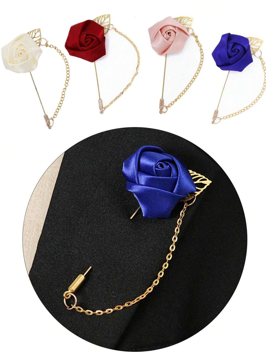 1 Peça Boutonnière de Noivo em Rosa de Seda com Folha de Corrente Dourada para Decoração de Noivo, Casamento e Festa de Casamento, Melhor Presente, Decoração de Casamento, Decoração Doméstica, Decoração de Quarto, Lembrancinhas de Festa, Decorações de Aniversário de Noiva, Formatura, Decorações de Festa Despedida de Solteira