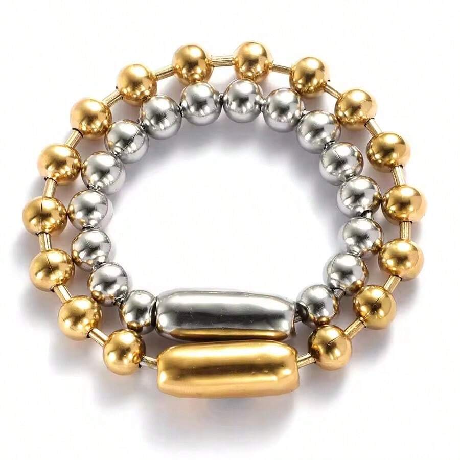 1 Peça Pulseira de Contas de Aço Inoxidável para Homens e Mulheres, Cor Dourado/Prata, Contas Metálicas de 8mm, Corrente Feminina