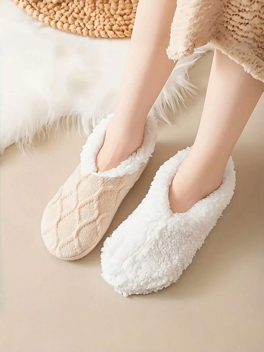 2 Pares de Meias Grossas Antiderrapantes para Piso de Inverno, Meias Quentes e Grossas, Forradas Termicamente, Fofas, Anticongelantes para Uso em Casa