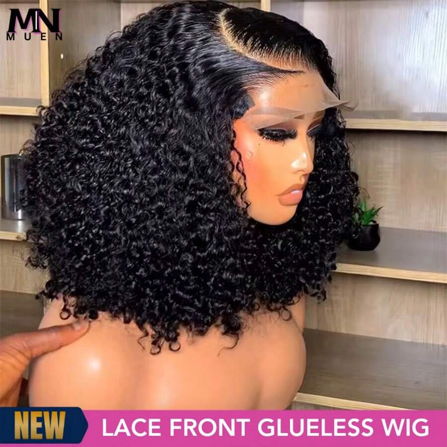 34 polegadas 200% de densidade Peruca Frontal de Renda Ondulada Natural Cor Natural Cabelo Misturado 13x4 Ondas Profundas Peruca Frontal de Renda Cabelo Misturado Humano para Uso Diário Peruca Frontal de Renda Cachos Jerry Ondas de Água Curta Bob Peruca de Renda Pré-Cortada Pré-Arrancada Linha de Cabelo Natural com Cabelo de Bebê