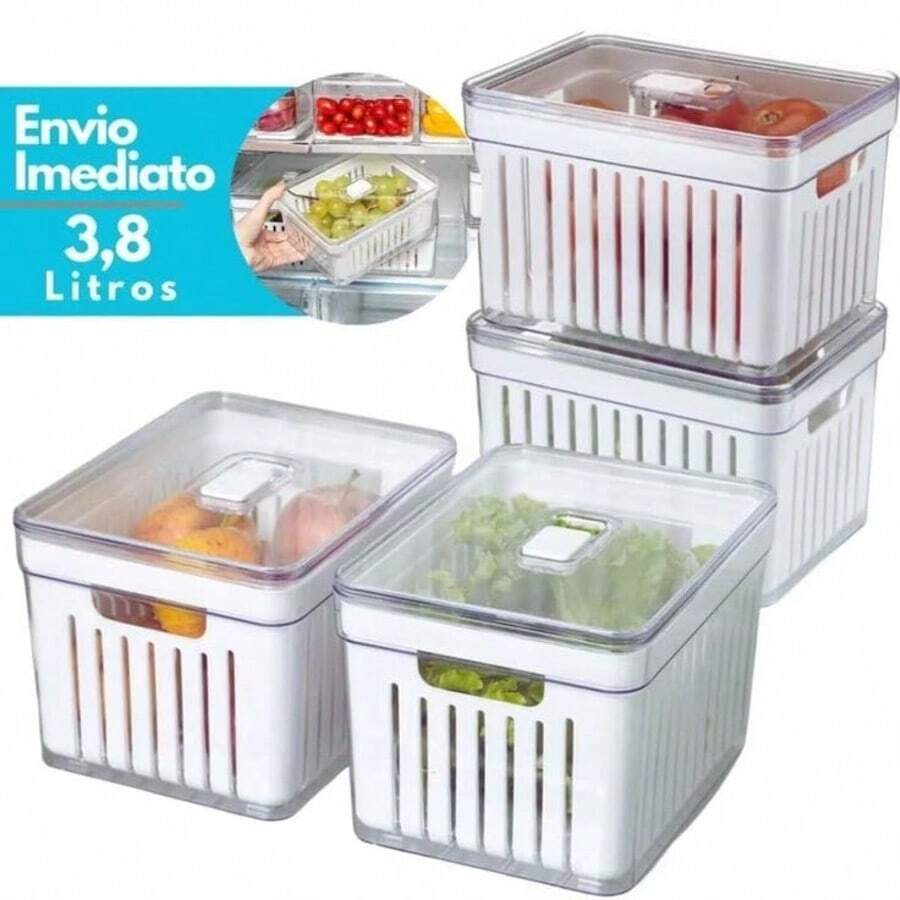 Organizador de Geladeira 3,8 Litros Cesto Com Tampa Multiuso Alimentos Verduras e Vegetais