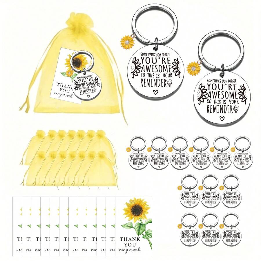 36 Peças/12 Conjuntos de Girassóis Motivacionais, "Você é Incrível!" "Você é Demais" Conjunto de Chaveiros de Presente, Aniversário, Formatura, Colheita de Outono, Ação de Graças, Natal, Presente de Feedback, Para Professores e Colegas como Agradecimento. O Conjunto Inclui 12 Chaveiros de Aço Inoxidável, 12 Cartões de Agradecimento com Folha Verde e 12 Sacos de Organza Branca Ideias de Presente Acessórios de Bolsa Cordões com Suporte de ID Acessórios de Carro Encantos de Bolsa