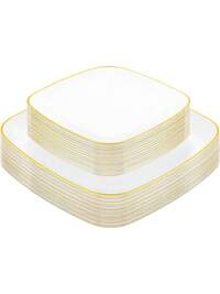 50/25/10/2 Peças Conjunto de Pratos Quadrados com Borda Dourada, Louça Premium com Design Arredondado e Borda Dourada, Bandejas de Servir de 10,25" e 7,5", Pratos de Sobremesa, Pratos de Salada, Adequado para Natal, Casamentos, Festas, Refeições Domésticas, Restaurantes, Cozinhas, Ao Ar Livre, Feriados e Eventos #7 Mais Vendido