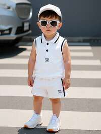Playful PalsSHEIN Playful Pals 2 peças/conjunto Meninos Bebê Moda Casual Simples com Detalhe de Remendo de Letra, Acabamento Listrado Prático, Regata Tricotada Gola Pólo e Conjunto de Shorts Tricotados Cinza, Adequado para Uso Casual em Casa no Verão, Esportes ao Ar Livre e Uso Diário, Roupas Infantis, Roupas para Bebê, Conjunto de Bebê, Camisa Pólo para Bebê, Colete para Bebê, Short para Bebê, Conjunto para Bebê, 3M-3T #1 Mais Vendido