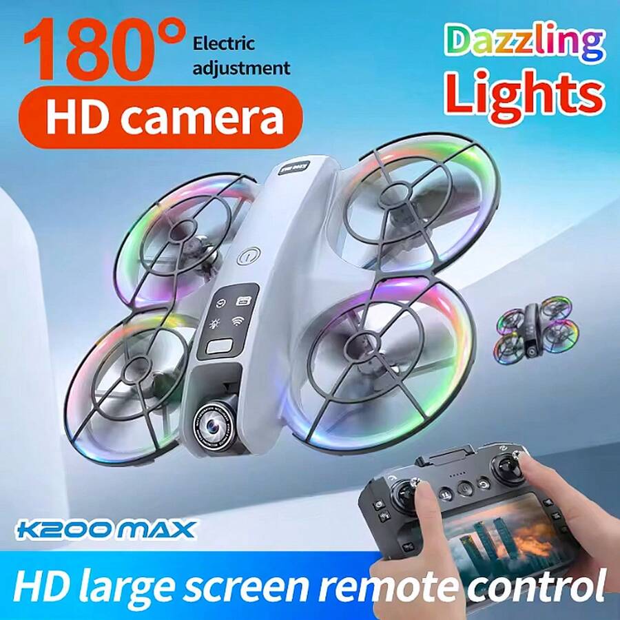 CASRRA O Drone K200 de Controle Remoto com Tela Grande, Lançamento de 2025, possui um corpo com luzes deslumbrantes, motor sem escovas, detecção de obstáculos em quatro lados, câmera de 720P, controle remoto com tela, bateria de alta capacidade, caixa de presente, carregador de bateria, cabos de dados e uma caixa de embalagem requintada. É o presente perfeito para iniciantes adultos e festas de aniversário, câmera digital.