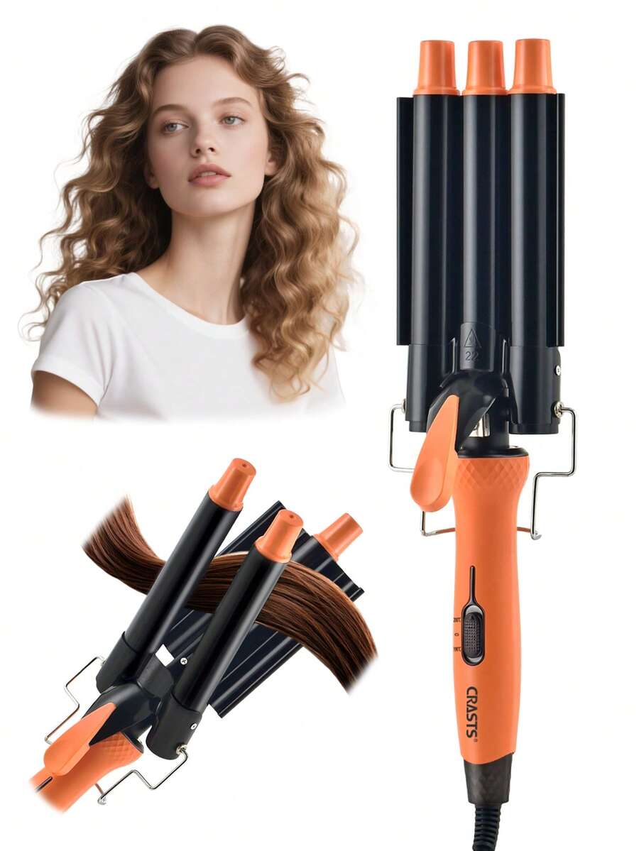 CRASTS Ferro de Ondular 3 em 1, Controle de Temperatura, Onda Grande, Cachos Grandes, Ondulação a Água, Laranja