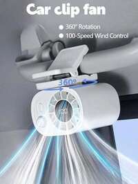JMMOVentilador de Clipe para Carro com Rotação de 360°, Visor LED, Ventiladores de Clipe para Carro, 100 Velocidades Ajustáveis, Recarregável via USB, Ventilador de Clipe Portátil, Para Casa, Escritório, Carros e Camping, 1400mAh, Acessórios para Carro