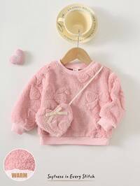 SHEIN 4 peças/Conjunto Blusão de Moletom Casual Minimalista para Bebê Menina, Gola Redonda, Grosso, Macio, Confortável e Quente, Adequado para Uso Diário no Outono e Inverno, Branco Creme, Bege Creme, Rosa Creme, Estampa de Leopardo Creme, Laço Retrô de Leopardo, Mini Laço de Poá