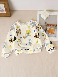 Cozy PixiesCozy Pixies Moletom Gola Careca de Manga Longa com Estampa de Leão e Coelho Cartoon para Bebê Menina, Confortável, Versátil, Fashion, Casual, Estilo Básico Fofo, Adequado para Outono/Inverno, Lazer Interno/Externo, Esqui, Volta às Aulas, Uso Diário, Esportes, Brincadeiras