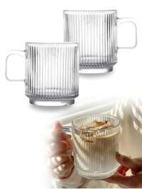 2 Peças Copo de Café de Vidro com Isolamento de Parede Dupla Simples e Luxuoso, de Camada Dupla, Bom Isolante Térmico, Transparente, com Alça Portátil, Adequado para Cappuccino, Latte, Chá, Bebidas Quentes e Frias, Adequado para Páscoa, Natal, Festa de Aniversário, Volta às Aulas Envio Nacional