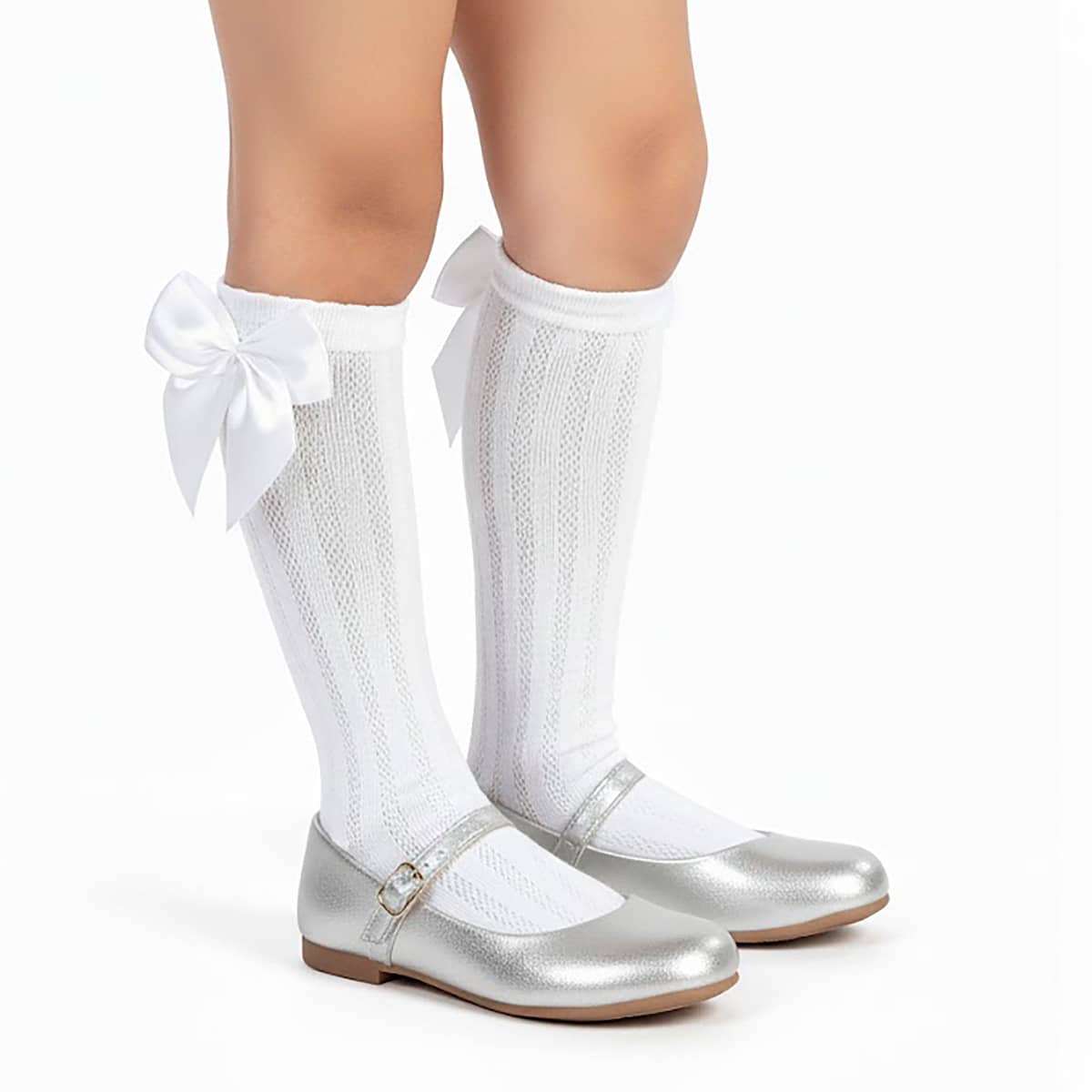 My ToT Kit Sapatilha Infantil Feminina Confortável e Meia Branca 3/4 com Laço