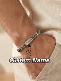 Pulseira personalizada com letra em aço inoxidável, comprimento ajustável, presente da moda para casal, mãe, colegas de classe, amigos, adequado para o Dia dos Namorados, Dia das Mães, estilo prateado elegante, vintage, estudantes do ensino médio e fundamental, universitários, calouro, veterano, estudantes de graduação, outono chique, romance delicado, visual glamoroso, organizador de viagem 1 Peça Pulseira DIY Inicial de Ouro com Zircônia Cúbica Minimalista, Pulseira Personalizada com Letra Simples, Bracelete Personalizado de Aço Inoxidável MAMA, Moda, Estilo de Outono, Minimalista, Simples, Casual, Moeda Vintage Personalizada, Presente Único para Namorada, Mãe, Família, Amiga, Filha, Aniversário, Dia dos Namorados, Dia das Mães, Formatura, Uso Diário, Casamento, Festa, Jóias para Senhoras 2 Peças Pulseiras de Casal Personalizáveis em Aço Inoxidável, Conjunto de Pulseiras Combinadas Personalizadas Dela e Dele, Gravação Disponível, Design Elegante e Minimalista, Ótimo para Dia dos Namorados, Dia das Mães/Dia dos Pais, Prateada, Elegante, Colorida, Vintage, Simples, Unissex, Casual, Fofas, Personalizada, Única, Presentes Ideais para Ele, Presentes Ideais para Ela, Dela, Namorado, Namorada, Pai, Mãe, Família, Amigos, Para Aniversários, Para Formaturas, Para Festas Pulseira Personalizada em Aço Inoxidável na Cor Dourada, Joias Personalizadas com Letra do Nome, Acessório Minimalista da Moda, Presente Elegante para Aniversário, Feriado, Aniversário, Família, Você Mesmo, Casamento, Viagem, Uso Diário, Joias e Relógios, Escolhas de Temporada, Traje Elegante, Amor Eterno Pulseira Personalizada com Nome para Homens, Pulseira de Aço Inoxidável Gravada em Vários Lados, Presente do Dia dos Pais (Pode Gravar Sobrenome da Família), Presente para Ele, Prata, Ouro, Moda, Colorido, Retrô, Minimalista, Unissex, Casual, Fofo, Personalizado, Único, Presente Ideal para Ele, Presente Ideal para Ela, Namorado, Namorada, Pai, Mãe, Família, Amigos, Aniversário, Formatura, Baile, Festa, Joias de Aço Inoxidável, Joias para Senhoras #4 Mais Vendido
