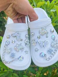 18 peças/Conjunto Acessórios Decorativos Destacáveis em Formato de Laço Rosa, Urso de Pelúcia, Laço, Coração, Flor, Estrela, Adequado para Sandálias, Tamancos, Sapatos de Jardim, Calçados de Praia, Todas as Estações, Ótimo Presente para Feriados 20 Peças Encantos de Sapato ABS Pérola Camélia, Laço Paetê, Flor, Corrente de Alumínio Dourada, Clipes de Sapato DIY Decorações, Adequado para Sandálias, Chinelos, Sapatos com Furos, Bolsas de Praia de Mulheres, Acessórios de Sapato Multifuncionais, Presente Perfeito