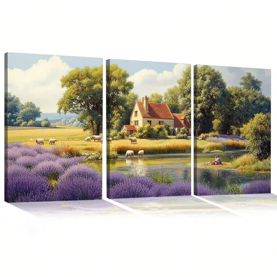 Quadro Decorativo Chácara com Lavanda MDF Mosaico Sala Quarto Escritório Impressão Em Hd