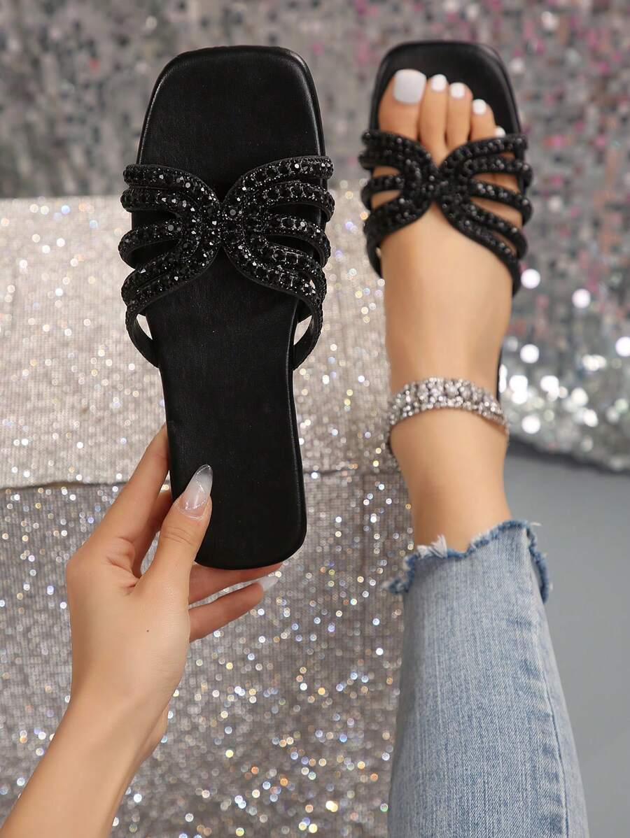 Sandálias de dedo abertas casuais da moda com Strass de Vidro para Mulheres