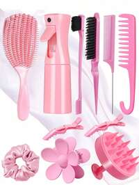 1/3/6/9/11 Peças Conjunto de Escovas para Penteado, Inclui: Escova Alisadora, Borrifador, 3 Pentes Traseiros para Crianças, Escova de Massagem do Couro Cabeludo, Pente de Dentes Largos Premium, Presilhas de Jacaré, Presilhas de Cabelo com Flor, Adequado para Meninas para Viagem, Ao Ar Livre, Esportes, Escritório, Escola e Outras Ocasiões, Produtos Essenciais de Cuidados com os Cabelos.