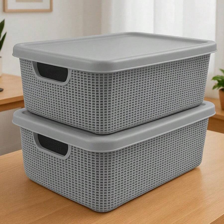 Kit 2 Caixa Organizadora com Tampa 15 Litros em Plástico Grande Resistente Multiuso Banheiro Cozinha