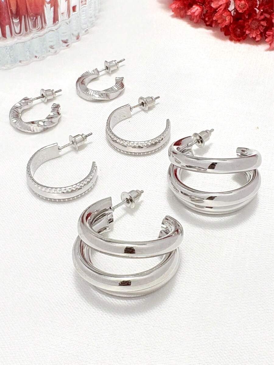 Vendedor IndicadoKit 3 pares brinco argola tripla maravilhoso+Brincos em forma de C+Brincos de metal torcido Folheado em Ouro 18k e Prata 925.