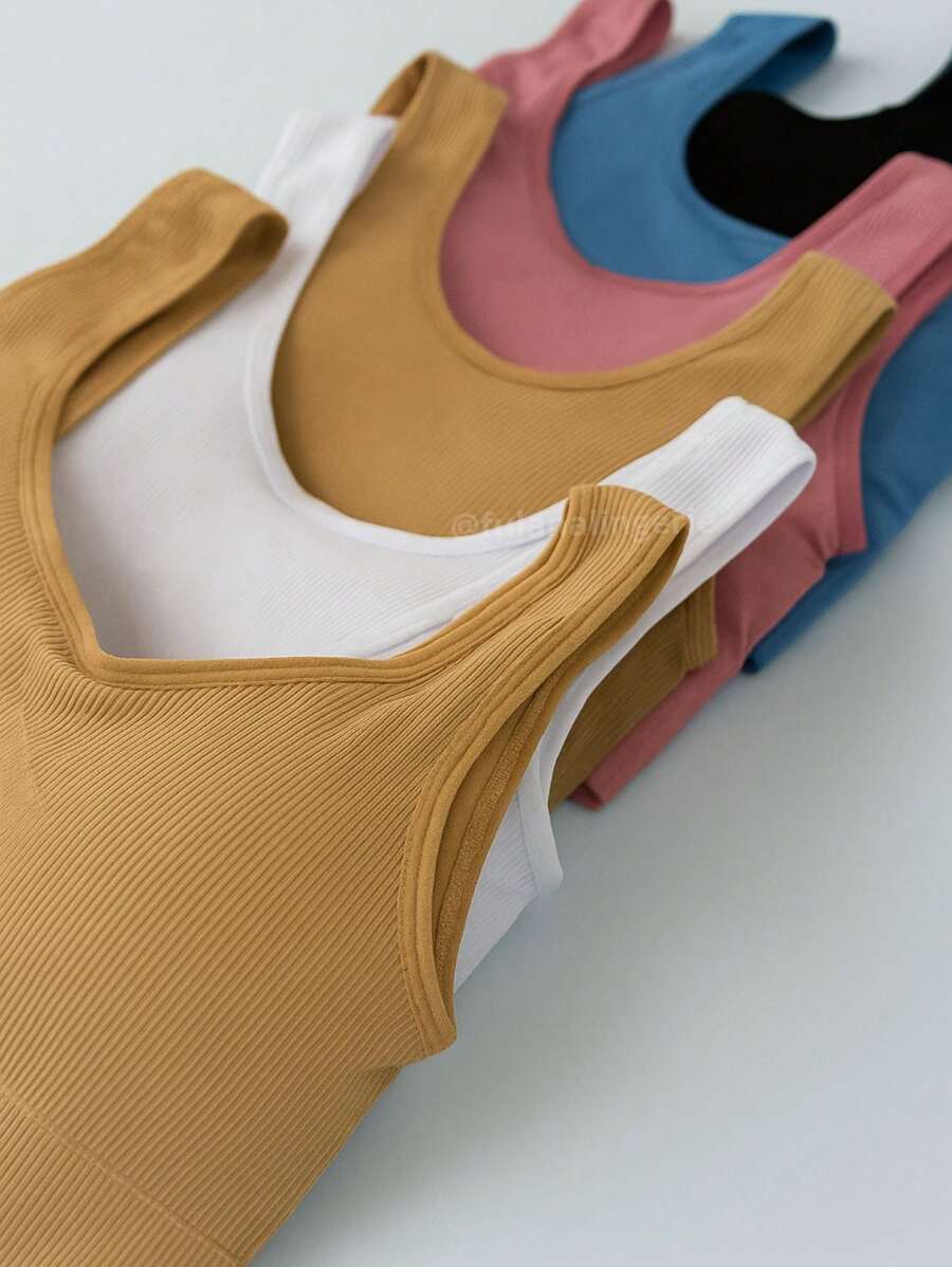 Kit Com 3 Sutiã Top Regata Com Bojo Removível CORES SORTIDAS - Top Import