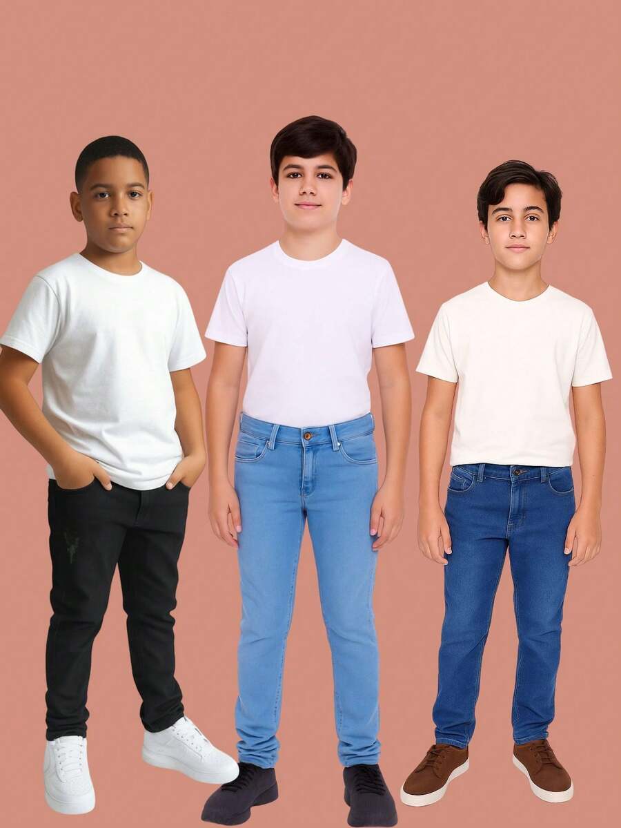 kit com 3 calças jeans infantil juvenil menino