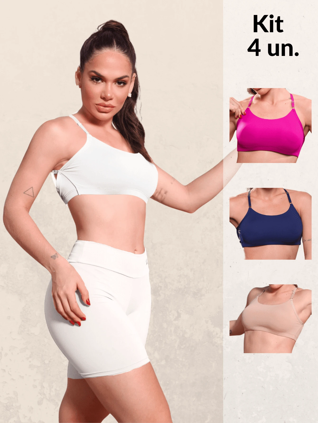 Kit com 4 Sutiãs Top Clean Sport Premium Academia Moda Intima Feminina Conforto Diário Alça Finas Ajustáveis Esportivo Fitness Dia a Dia Exercícios Fisio Moderna
