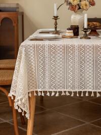 CirelleCirelle 1 peça Toalha de Mesa com Borla de Rosa Azul Vintage, Toalha de Móvel de Cabeceira, Capa para Decoração de Mesa de Centro, Adequada para Decoração Rústica de Casa de Campo, Sala de Jantar, Cozinha, Jantar, Festa, Feriado, Ação de Graças, Casamento