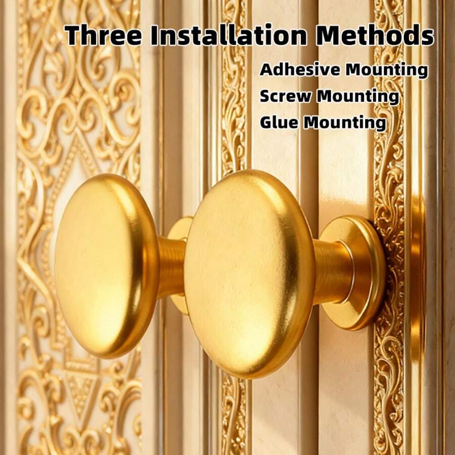 Alças de Ouro Areia de Luxo com Furo Único - Liga de Alumínio com 3 Métodos de Instalação (Incluindo Sem Furar), Puxadores Decorativos para Armários de Sapatos, Portas e Gavetas, Ferragens de Móveis (Parafusos Incluídos)