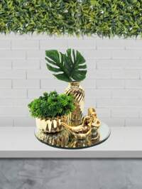 em Multicolorido Paisagem e Estatueta em Miniatura