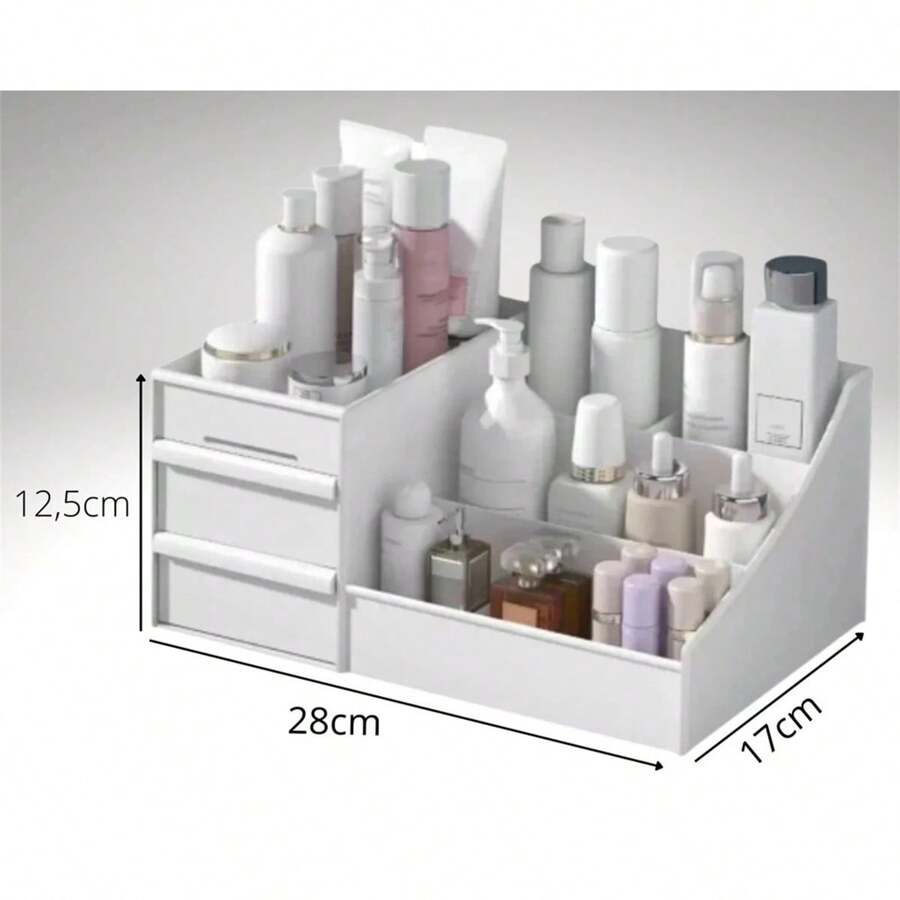 Organizador de Mesa Multiuso com Gavetas Escritório Maquiagem Branco Preto Rosa Eom Utilidades