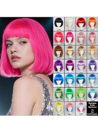 1 Peça Peruca de Cabelo Curto com Franja, Peruca Multicolorida de Anime para Cosplay, Adequada para Festas, Disponível nas cores Rosa, Verde, Preto, Dourado, Vermelho, Marrom, Azul, Branco, Roxo, Laranja, Amarelo, Arco-íris e Outras Cores Vibrantes, Adequada para Feriados, Convenções de Anime, Comemorações, Fantasia Multicolorida Fluorescente para Festas do Dia a Dia, Uso Diário, Também um Ótimo Presente de Aniversário