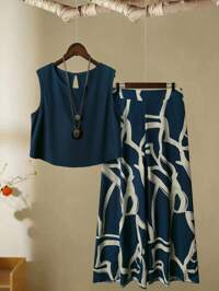 SHEIN VCAY Conjunto de 2 Peças em Malha com Camisa Listrada Azul e Branca e Shorts Plus Size para Mulheres, Conjunto de Roupas para Festa na Praia, Férias de Verão - Estilo Menina Coco, Verão, Boho Chique, Roupa Feminina de Estilo Boho, Roupas para Brunch, Aeroporto, Praia, Passeios pela Cidade, Férias, Roupas Ocidentais, Verão Europeu, Lua de Mel, Velho Dinheiro, South Beach, Costa de Amalfi, Conjuntos de Renda, Top de Renda #1 Mais Vendido