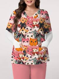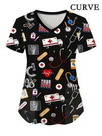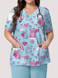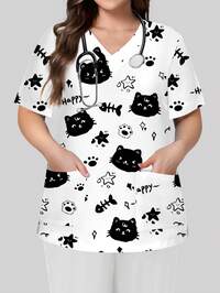 PopScrub Top de Uniforme de Trabalho Estampada com Coração Fofo para Enfermeira/Médica, Plus Size, Gola V, Manga Curta, Bolsos Duplos, Fenda Lateral, Impressão Gráfica, Uniforme Cirúrgico/de Exame, Uniforme de Trabalho para Petshop, Uniforme de Nutricionista, Roupa de Trabalho Funcional com Vários Bolsos, Camiseta Gráfica, Acessível, Funcional para Mulheres, Dia dos Namorados, Ano Novo PopScrub Top Feminina Plus Size de Manga Curta com Decote em V Branca, Bolsos Duplos, Fenda Lateral, Estampa Fofa de Gato, Estrela, Coração, Espinha de Peixe, Pegada de Animal, Uniforme de Trabalho de Enfermeira/Médica, Uniforme Cirúrgico/Uniforme de Trabalho Sólido para Tosa de Animais de Estimação, Uniforme de Trabalho de Nutricionista de Manga Curta, Roupa de Trabalho Funcional com Vários Bolsos, Roupa de Férias Funcional e Adorável