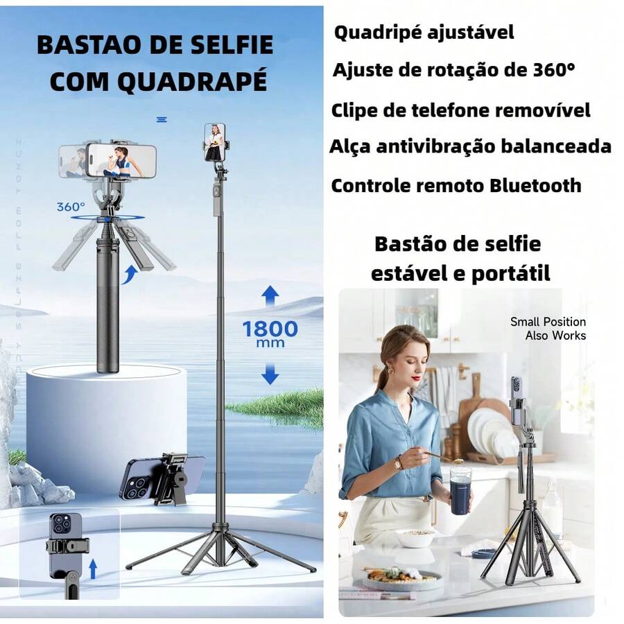 Vendedor IndicadoBastão De Selfie com quadrapé Controle Bluetooth 1.8CM foto e vídeo com antivibração e estabilizador portátil MZP-305
