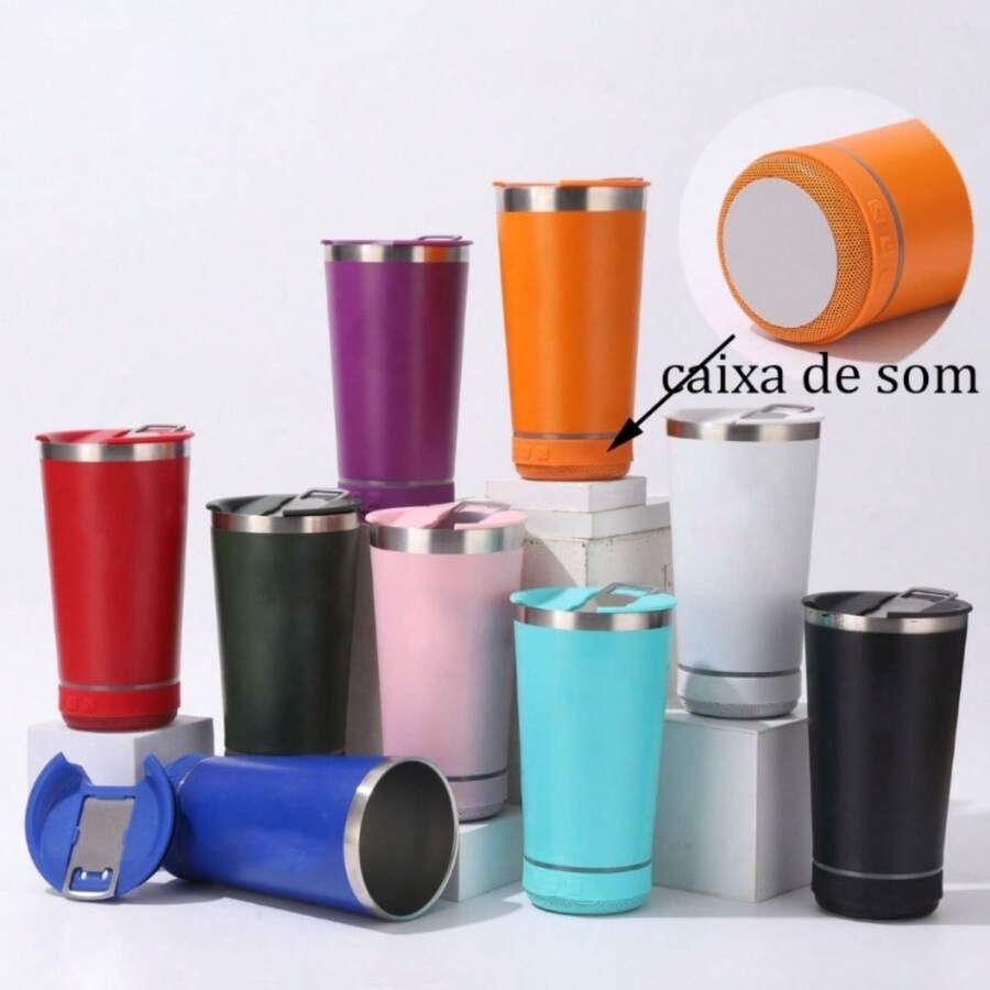 Vendedor IndicadoCopo térmico inox com tampa abridor e caixa de som com bluetooth Led 420ML