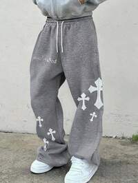Blissspin KidsSHEIN Calça de Moletom Casual Cinza com Listras para Adolescentes, com Bolsos e Cordão na Cintura, Adequada para Outono, Inverno, Quente, Universitária, Uso Doméstico, Diário, Esportes, Festa de Aniversário, Versátil e Minimalista com Forro Térmico