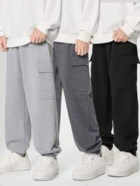 SHEIN Compre 2 e Leve 3 Pacote de 3 Calças de Moletom Esportivas Casuais para Meninos Adolescentes com Decoração de Corda na Cintura, Alto Custo-Benefício, Multipack Adequado para Conjuntos de Roupas Infantis, Roupas de Menino Adequadas para Volta às Aulas, Adequadas para Festas de Aniversário, Festas à Noite, Apresentações, Casamentos, Batizados, Cerimônias de Abertura, Adequadas para Uso Diário, Adequadas para a Escola, Adequadas para Viagens, Adequadas para Esportes, Adequadas para as Estações de Outono e Inverno #4 Mais Vendido