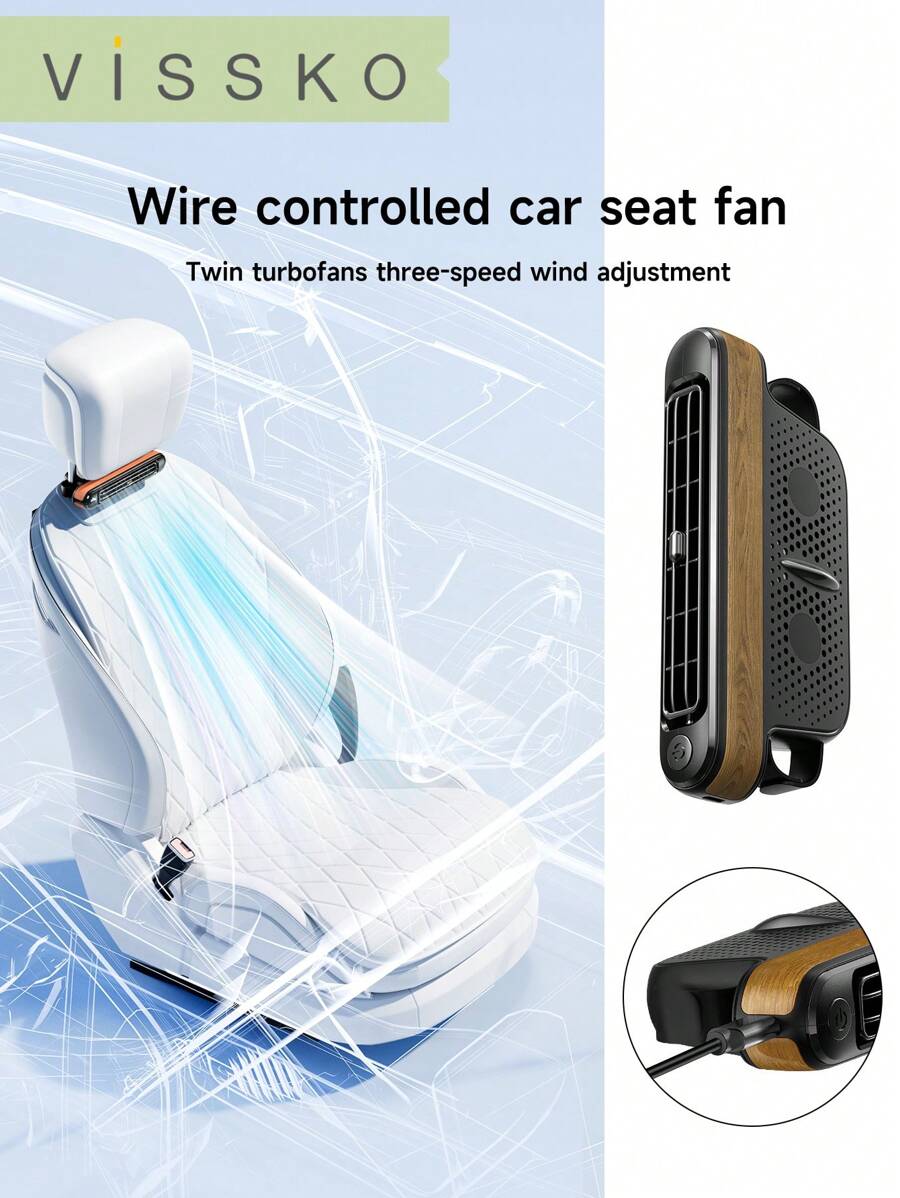 ViSSKO Ventilador de Circulação de Ar Pessoal 3 Velocidades Alimentado por USB - Ventilador Durável de ABS para Motoristas em Carros Quentes