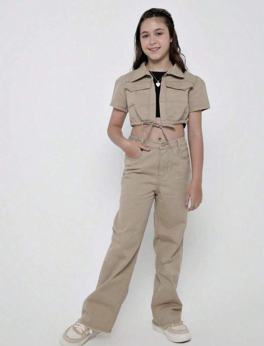 Calça Wide Leg Jeans Denim Moda para Meninas Infantil Juvenil Estilosa 10 ao 16
