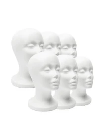 em Cabeça de manequim com suporte Toucas e ferramentas para perucas