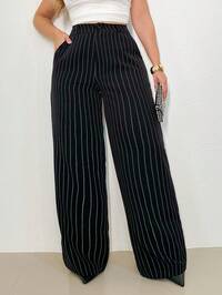 A&DD MODA, REF: H932(PLUS SIZE) - Calça listrada feminina plus size, plus size estilosa, cintura alta, perna larga, elegante, casual, formal, leve, moderna, confortável, calça feminina, tecido leve, estampa listrada, visual simples, versátil, alta qualidade ✨ Envio Nacional