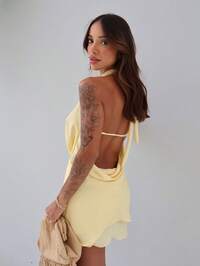 Aloruh Vestido Curto Elegante de Chiffon Amarelo Manteiga com Decote Halter e Amarração, Vestido de Encontro para Mulheres, Vestido para Noite Fora, Vestidos de Verão para Mulheres, Looks para Lua de Mel, Vestido de Convidada de Casamento, Looks para Férias em Ilha, Vestido de Convidada de Casamento, Vestidos Soltos para Mulheres, Vestidos Elegantes para Festa, Vestidos de Aniversário para Mulheres #10 Mais Vendido