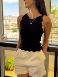 em Malha canelada Tops de malha femininos