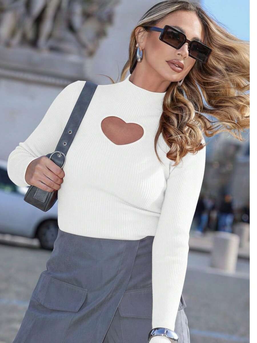 Blusa Cacharrel De Inverno Feminina Trico Modal Decote Coracao Manga Longa