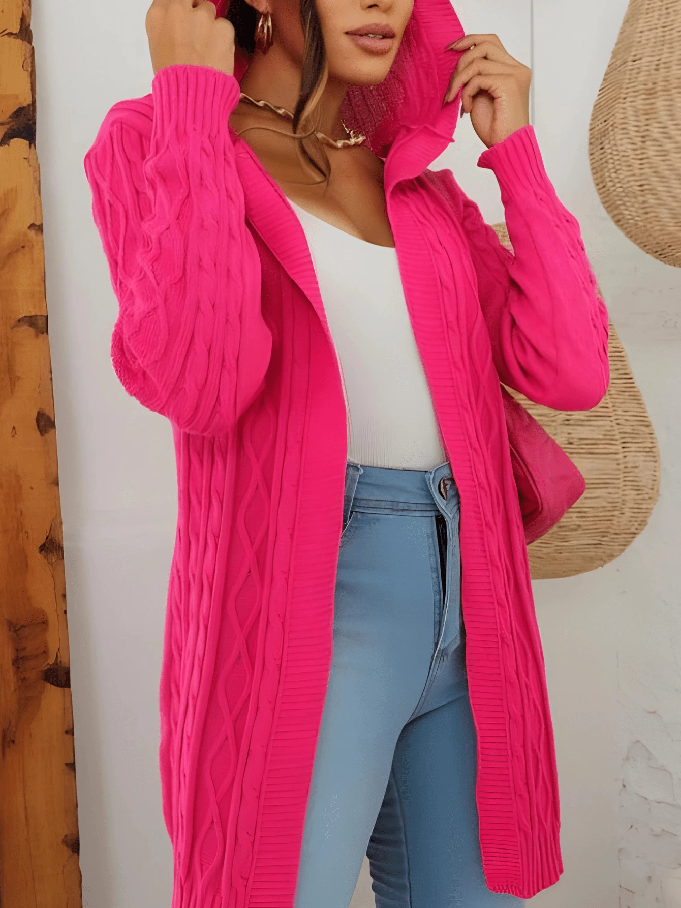 Cardigan Max Feminino Tricô Com Touca E Bolso TENDENCIA2025/MODABLOGUIERA/FESTA2025JUNINA/OUTONOINVERNO/ MODA GRINGA